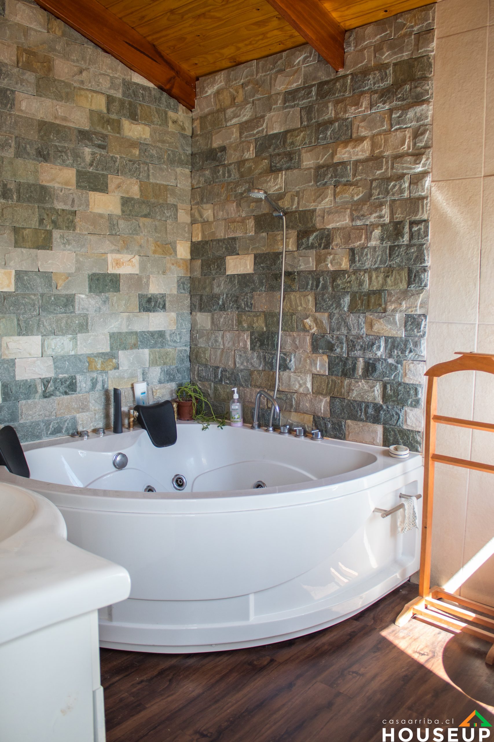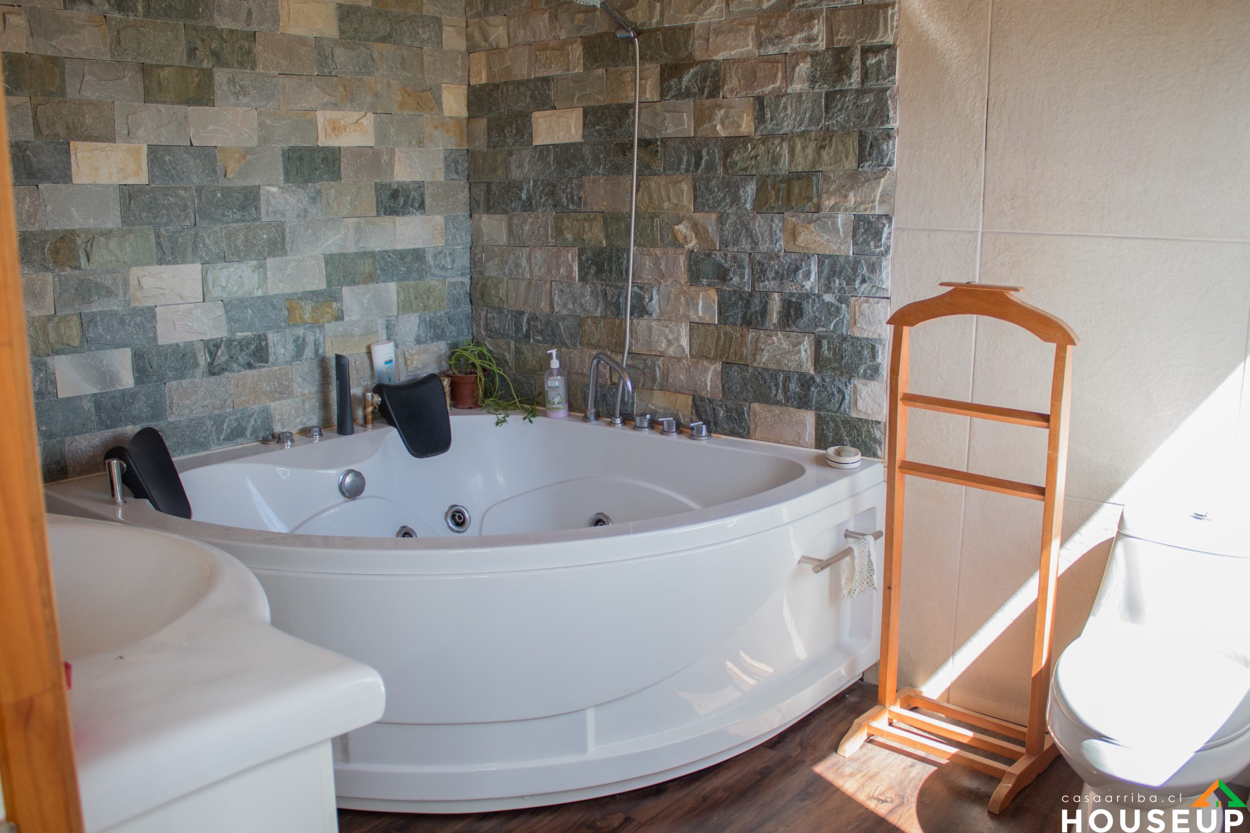 La primera casa es de 3 piezas 2 baños. la pieza matrimonial muy amplia con jacuzzi mas otras 2 piezas. 90 mts aprox construidos.